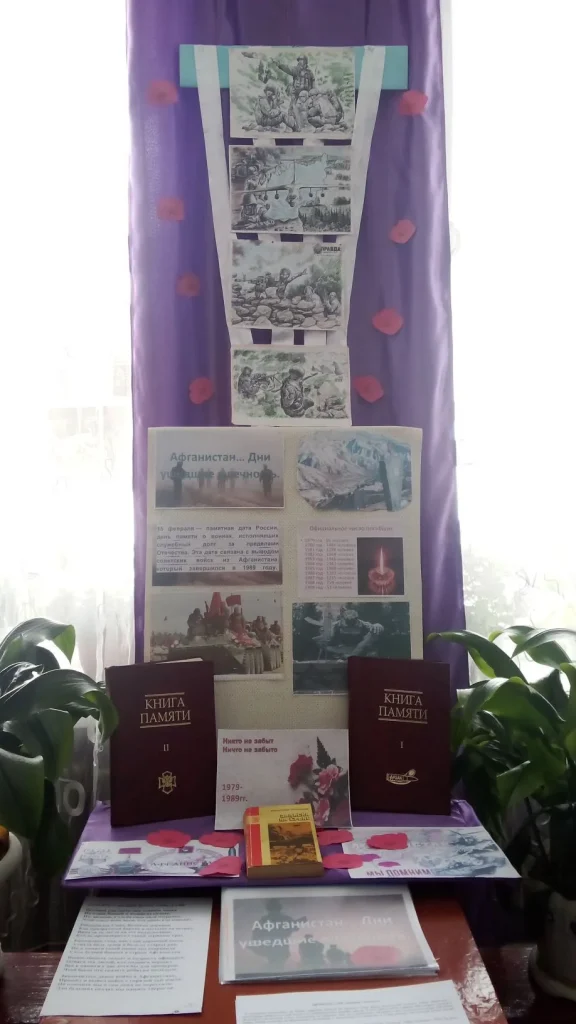 К Дню памяти о россиянах, исполнявших служебный долг за пределами Отечества в Новоалейской сельской библиотеке состоялась тематическая беседа «Афганистан… Дни ушедшие в вечность». Библиотекарь Н.М. Кузнецова рассказала ребятам об Афганской войне, о причинах ввода советских войск в Афганистан, о мужестве, стойкости и героизме наших солдат, принимавших участие в военных действиях в Афганистане, о значении афганской войны в истории нашей страны. В завершении мероприятия участники ознакомились с книгами, представленными на выставке.